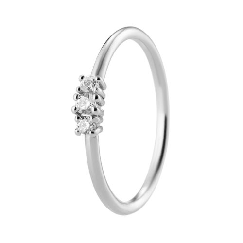 Engagement ring in 18K with a 0.05ct diamond in the middle and two 0.03ct diamonds on the sides