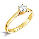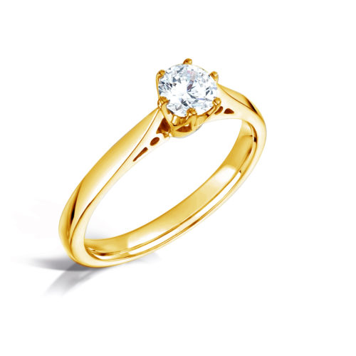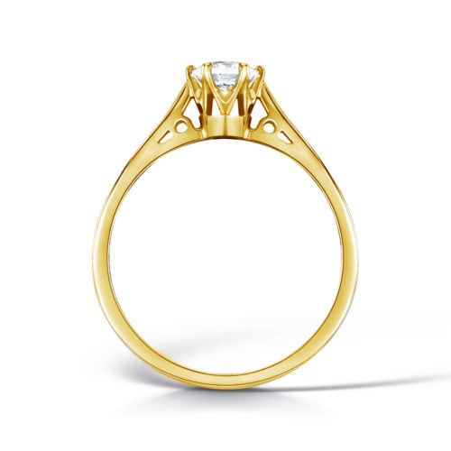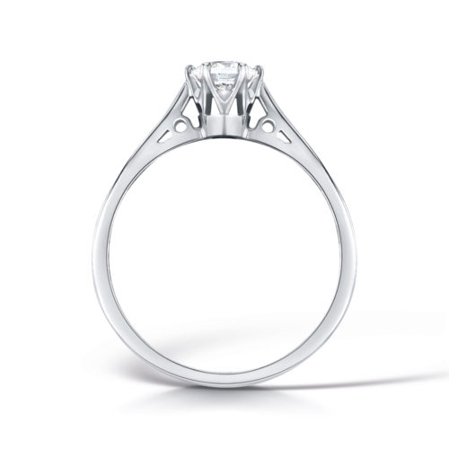 Divine is and extraordinary solitaire ring in 18K gold with a brilliant-cut 0.50 ct G-vs diamond (5.0 mm). The diamond is mounted with 6 elegant claws, which emphasise the brilliant-cut diamond.