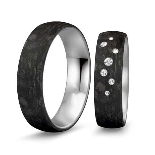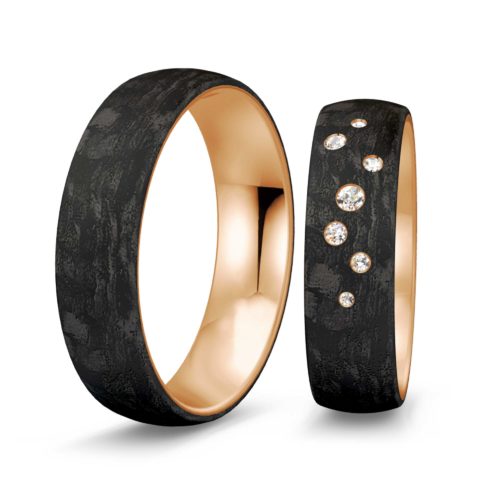 Mycket vackra kolfiberringar i kombination med 14K guld eller 950 Platina. Diamantringen är infattad med 7 stycken, totalt 0.091 ct G-vs briljantslipade diamanter. Carbon Gold Star är en mästerlig kombination av starkt kolfiber och tidlöst guld, vilket framhäver varje detalj. De skimrande diamanterna adderar en extra touch av lyx, och gör varje ring till ett konstverk.