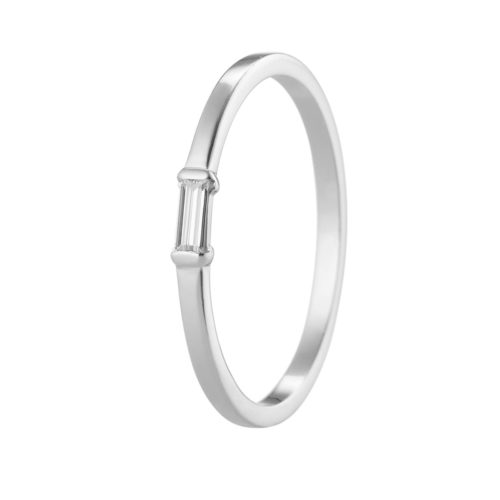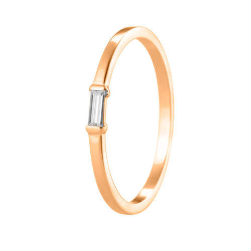 Elegant guldring i 18K med en 0.06ct baguetslipad diamant på 3,5×1,5 mm.