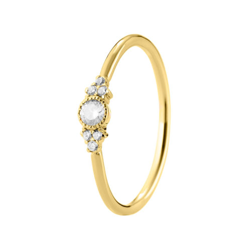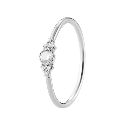 Förlovningsring i 18K med en 0.10ct diamant i mitten och sex 0.06ct diamanter på sidorna.