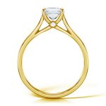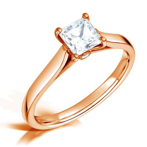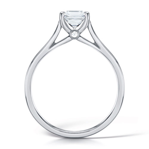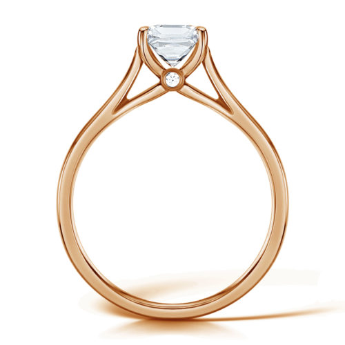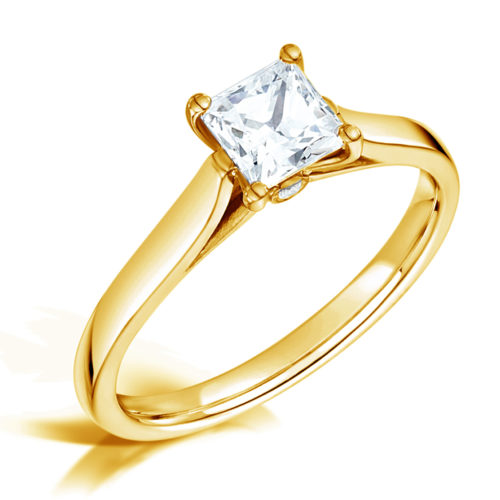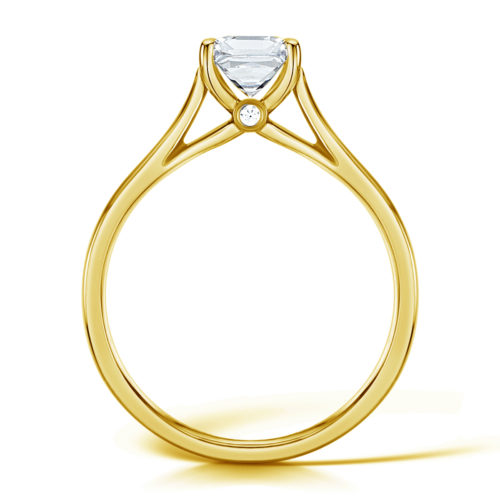 Tiffany är en vacker sidostensring i 18K guld med en princesslipad 0.33ct G-vs diamant som huvudsten (3.8mm).