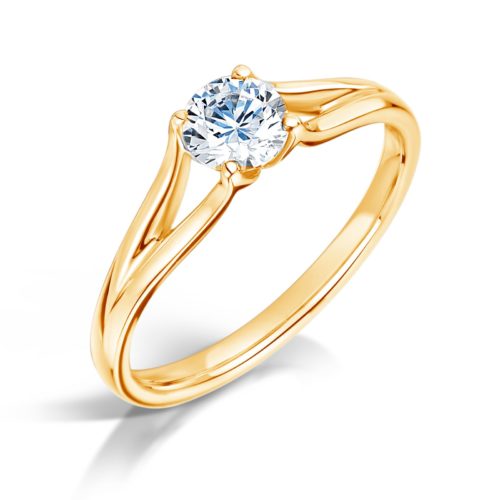 Empress – en princesslik solitärring i 18K guld med en briljantslipad 0.30ct G-vs diamant (3.8 mm). Mycket fint hantverk då sidorna av ringen som är 2 mm breda delar sig och blir lika breda som diamanten.