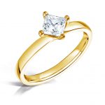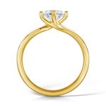 Glow är en vacker solitärring i 18K guld med en princesslipad 0.30ct G-vs diamant (3.8 mm). Diamanten hålls fast av 4 “twistade” klor. Det som gör Glow unik är att klorna är vridna 45 grader vilket ger ett intryck av att diamanten är större.