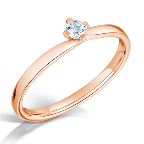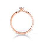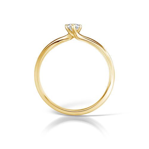 Snowflake är en diskret solitärring i 18K guld med en briljantslipad 0.20ct G-vs diamant (3.08 mm). Diamanten hålls fast av 4 “twistade” klor.