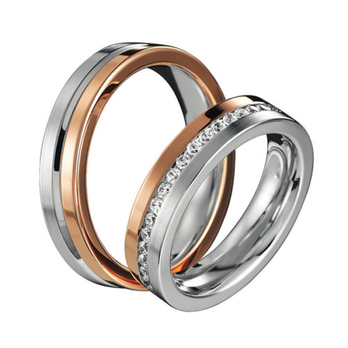 Tvåfärgad Cylinderformad guldring tillverkad med högsta finish. Dessa ringar har comfort-fit invändigt för att det skall kännas behagligt att bära dem. Diamantringen har infattat 0,80 ct W/si briljantslipade diamanter i kanalfattning.